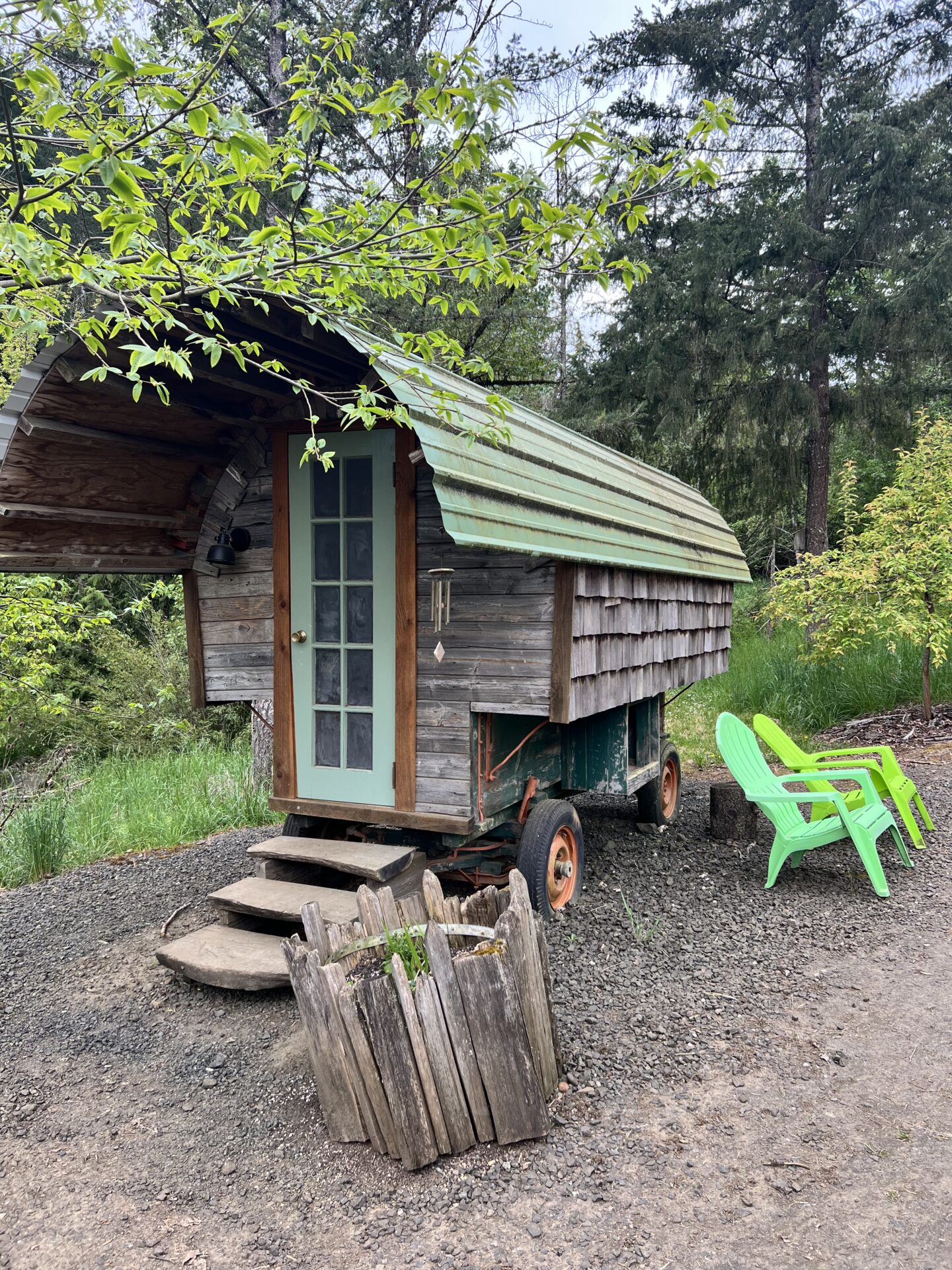We got way more value for our money staying on the farm compared with a sterile, overpriced hotel. And I learned that we absolutely don’t value our farmers and ranchers enough. They’ve got tough, often thankless, jobs that we take for granted. It’s not a glamorous life, but there is somehow an almost magical, life-affirming connection inherent and embedded in their daily tasks. I was able to feel just a little of that during our stay. I’d never be suited to live a sheepherder’s life, but I’d gladly stay in that comfy wagon again – only the next time I set foot in that barn with the hay-covered dirt floor, I’m going to be really careful where I walk.