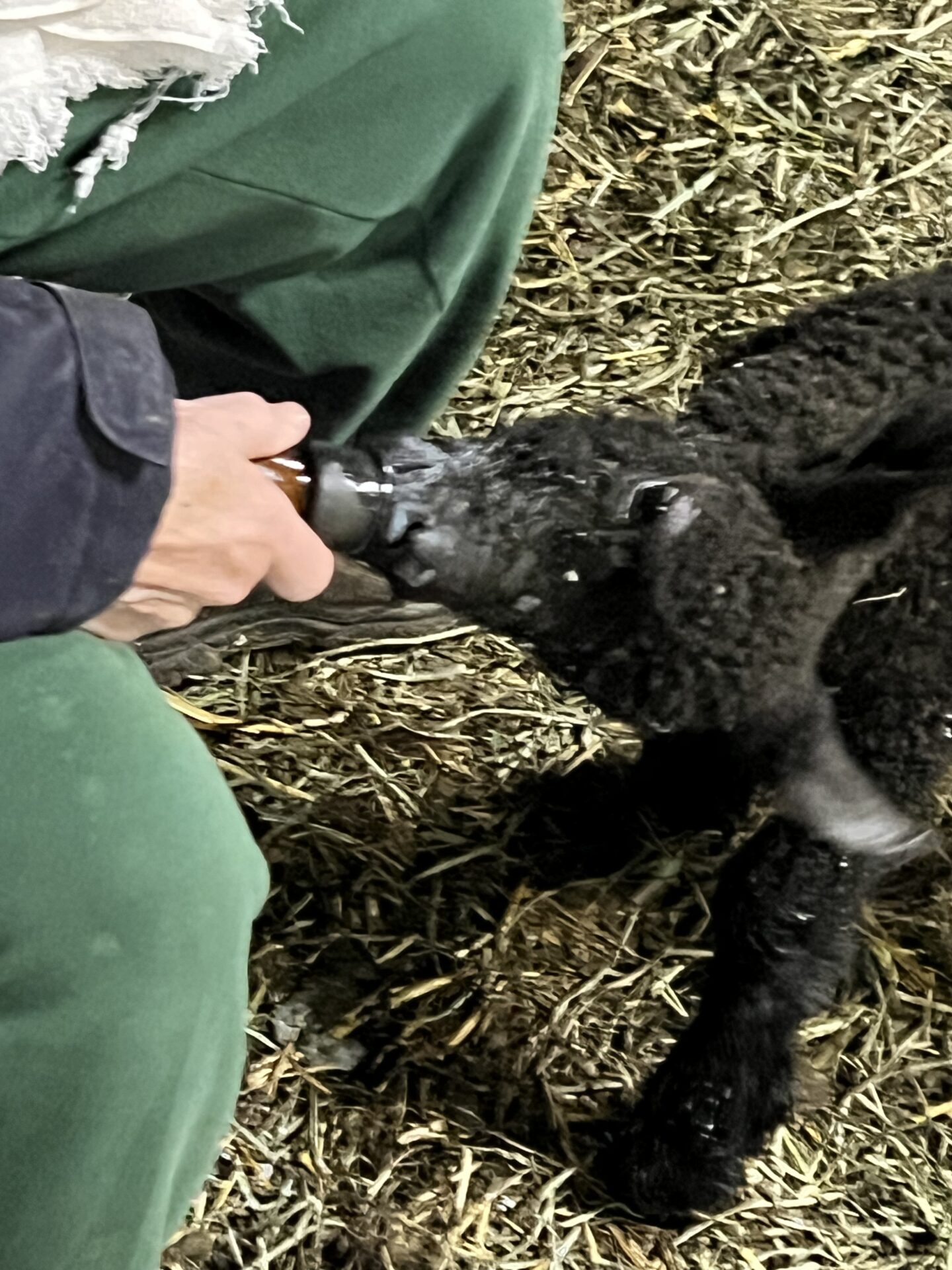 Births and deaths are a fact of life on the farm. Lois’ most recent additions were some baby chicks, kept in a heated pen, and five newborn lambs. So cute! The lambs were having difficulty feeding – there was some kind of anatomical issue with the mother – and Lois had to feed them by hand multiple times a day. Without her intervention, the lambs would die. Lois described another situation, fortunately a rare one, where a young sheep could not completely eliminate fecal material, resulting in a rather messy rear end. If Lois didn’t help clean the animal, this rather shitty (ahem!) situation would attract parasites which could kill the sheep in a matter of days.